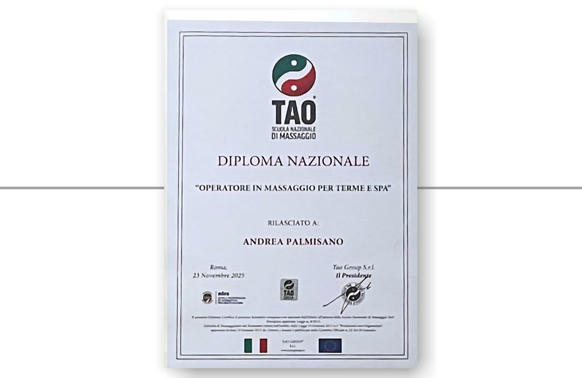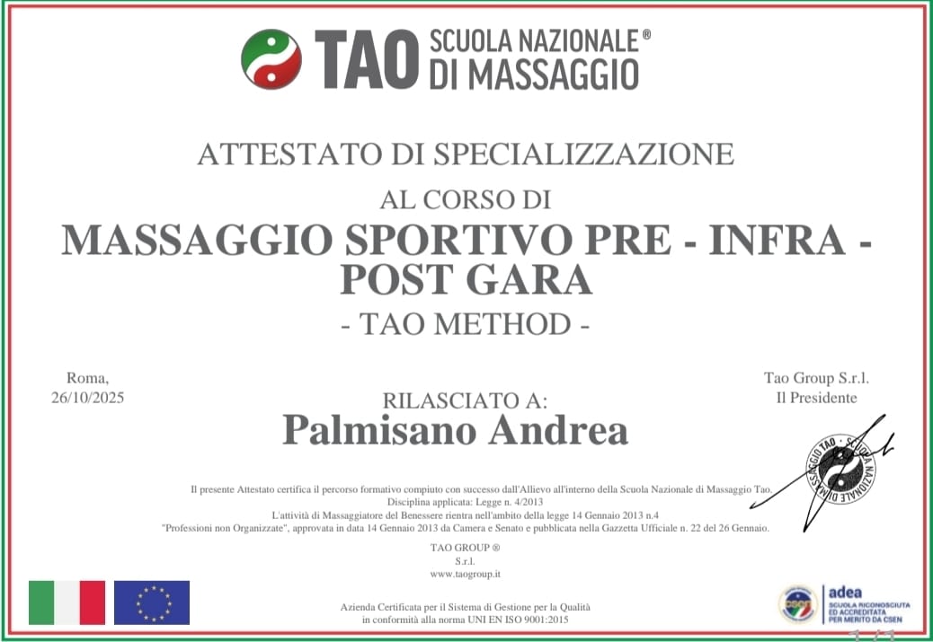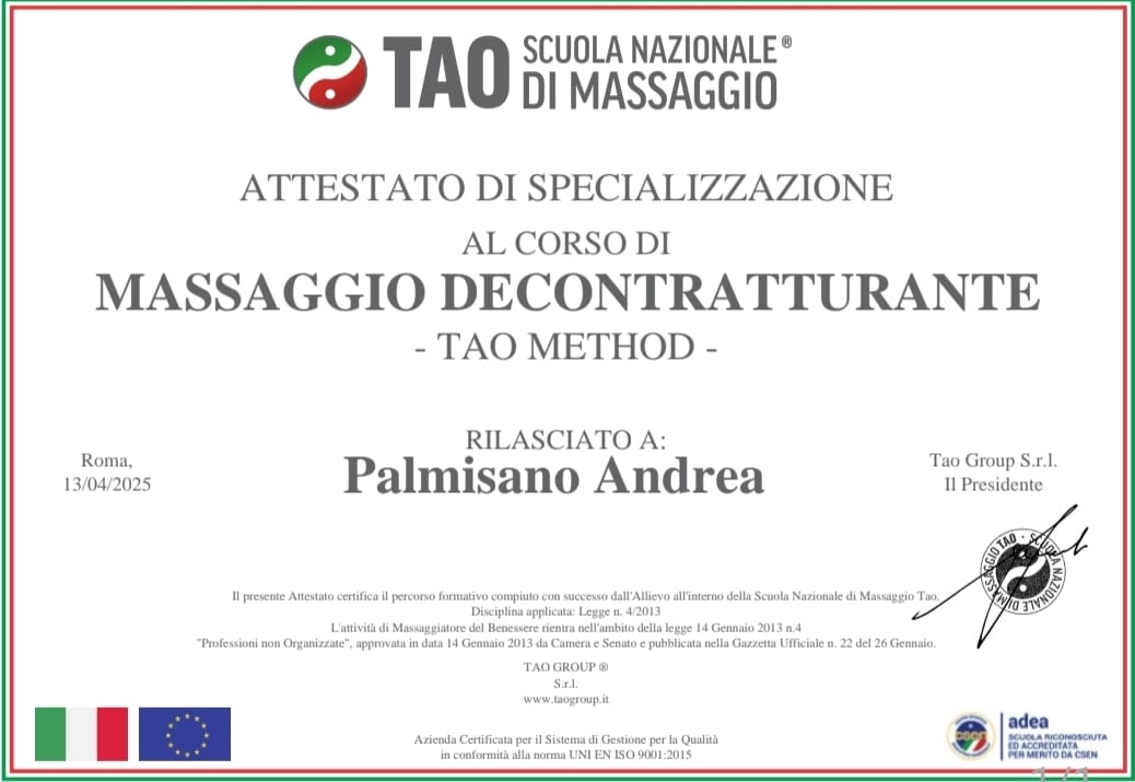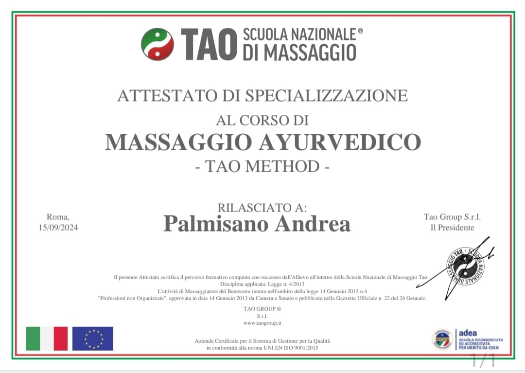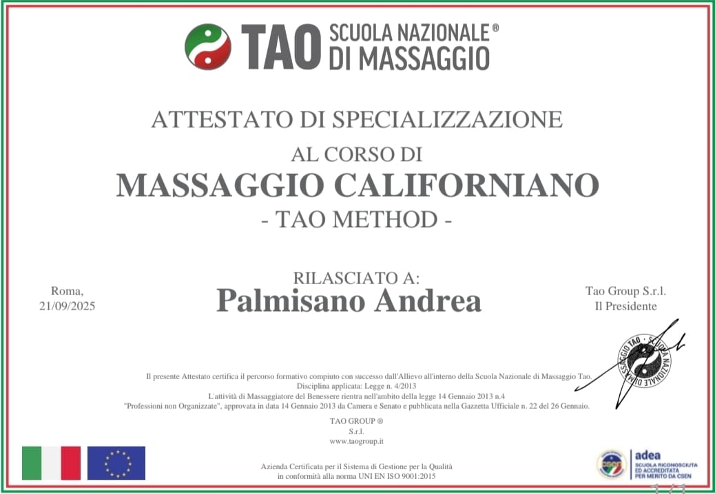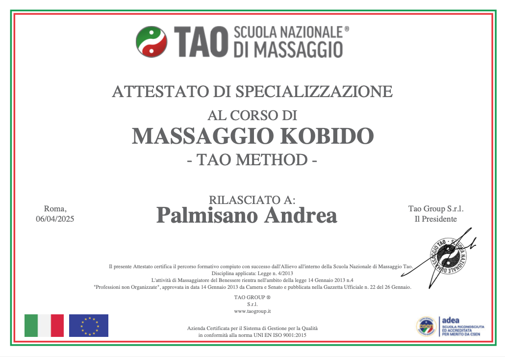 La mia formazione proviene dalla Scuola TAO Massaggi Nazionali